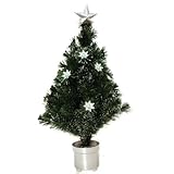 Good Tidings 43039 Table Piece Fiber Optic Tree Silver Glitter Snow tip with stars, 32-Inch