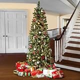 In the foyer, corner or a small apartment, this festive space-saver fits narrow spaces. Pre-lit with 300 clear lights, lush with 502 tips. Assembly. UL approved. Read more