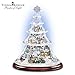 Thomas Kinkade Animated Holiday Tree Sparkles with Light and Motion! Exclusive, Unique Christmas Home Decor! - Let the soft shimmer of light lead you to a place where love glows warmly from within, where hearts are always gladdened with holiday festivities, and where you are always welcome! This breathtaking Thomas Kinkade animated holiday tree takes you to a place wrapped snugly in the comforts of a cozy illuminated village, fully dimensional, meticulously hand-painted with a train circling the base and set within the radiant beauty of a sculpted crystal Christmas tree! It's a true Masterpiece Edition!Available exclusively from Hawthorne Village, this unique Christmas home decor is filled with fascinating details, all inspired by the artistry of Thomas Kinkade. It lights up from within, and will bring a festive mood to your home as a miniature train rolls around the base and a medley of Christmas songs makes the festivities complete.The collectible crystal Christmas tree is hand-cut with diamond-pattern facets, and there's even an opulent tree topper with nearly 60 simulated gems and silver plating. Don't miss this sparkling opportunity to get in the Spirit - strong demand is expected, so order now!