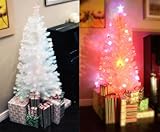 Our premium white artificial christmas trees with Fiber Optic lights powered by energy saving LED lights are designed for quick and easy assembly. In minutes, your tree is ready to glow! When the holidays are over, tree sections simply fold up for storage. Our trees set the highest standard for quality, making them the choice of professional decorators. The dense foliage, made of fade- and crush- resistant PVC needles, appears fresh-cut. The tips are sculpted to enhance the trees' lifelike appearance. Of course, all the materials are flame-retardant. Sturdy bases and trunks add heft to keep each tree firmly planted in an upright position. Simply place tree into stand, and fluff branches to you liking. Plug it in and watch the magical colors fill your room. Happy Holiday!!! Read more